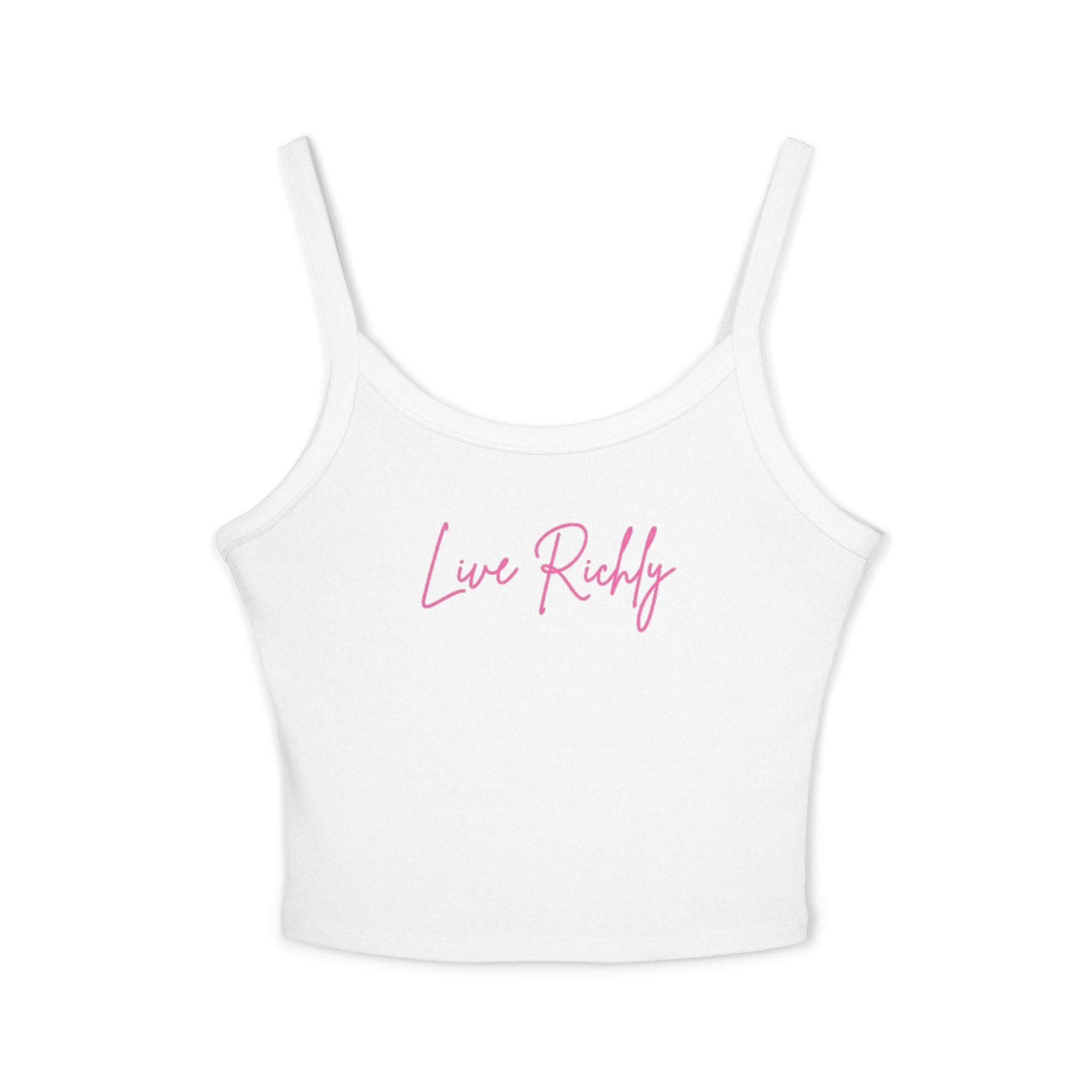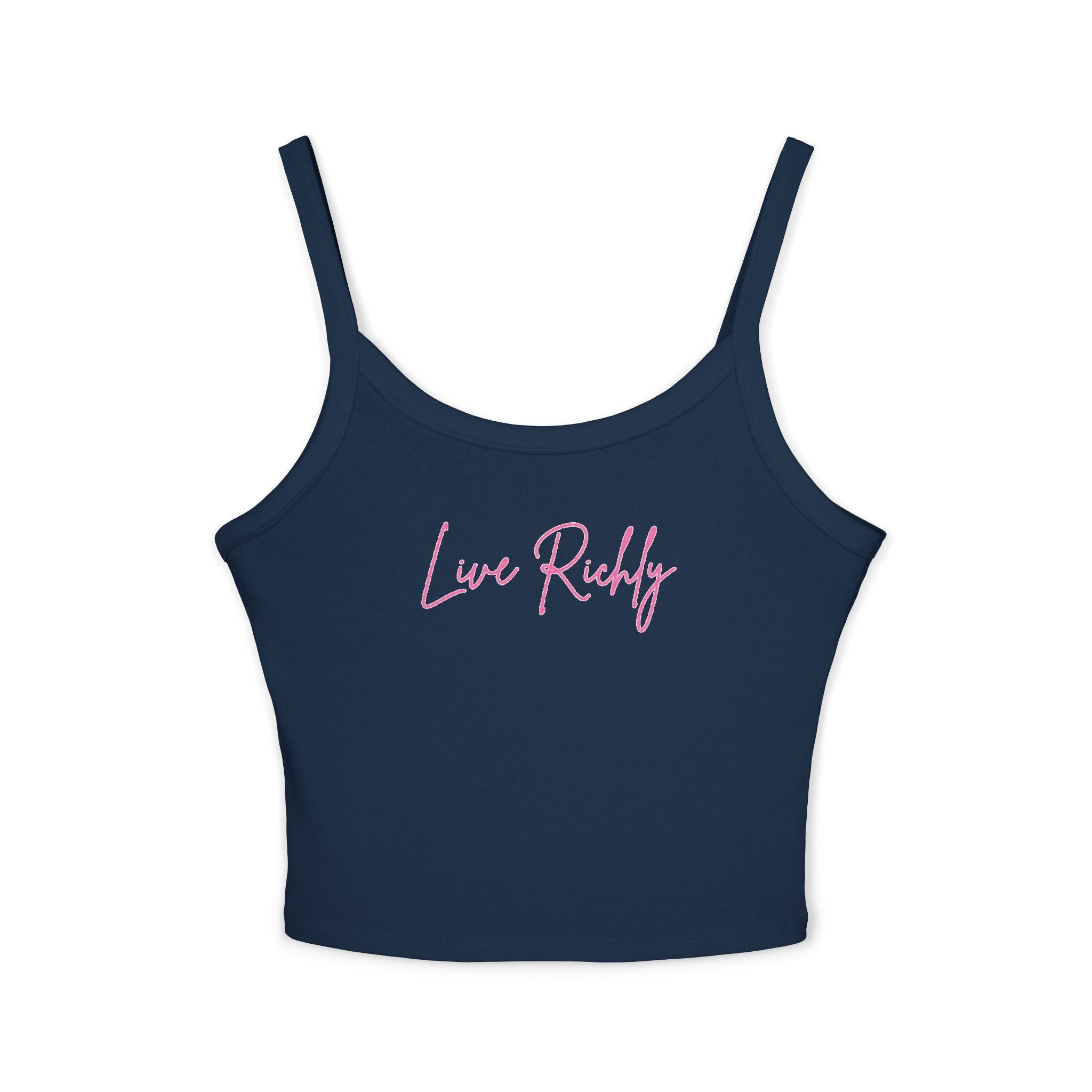 BHLC “Live Richly” Spaghetti Strap Tank Top – Slim Fit Cotton-Blend Summer Top for Women