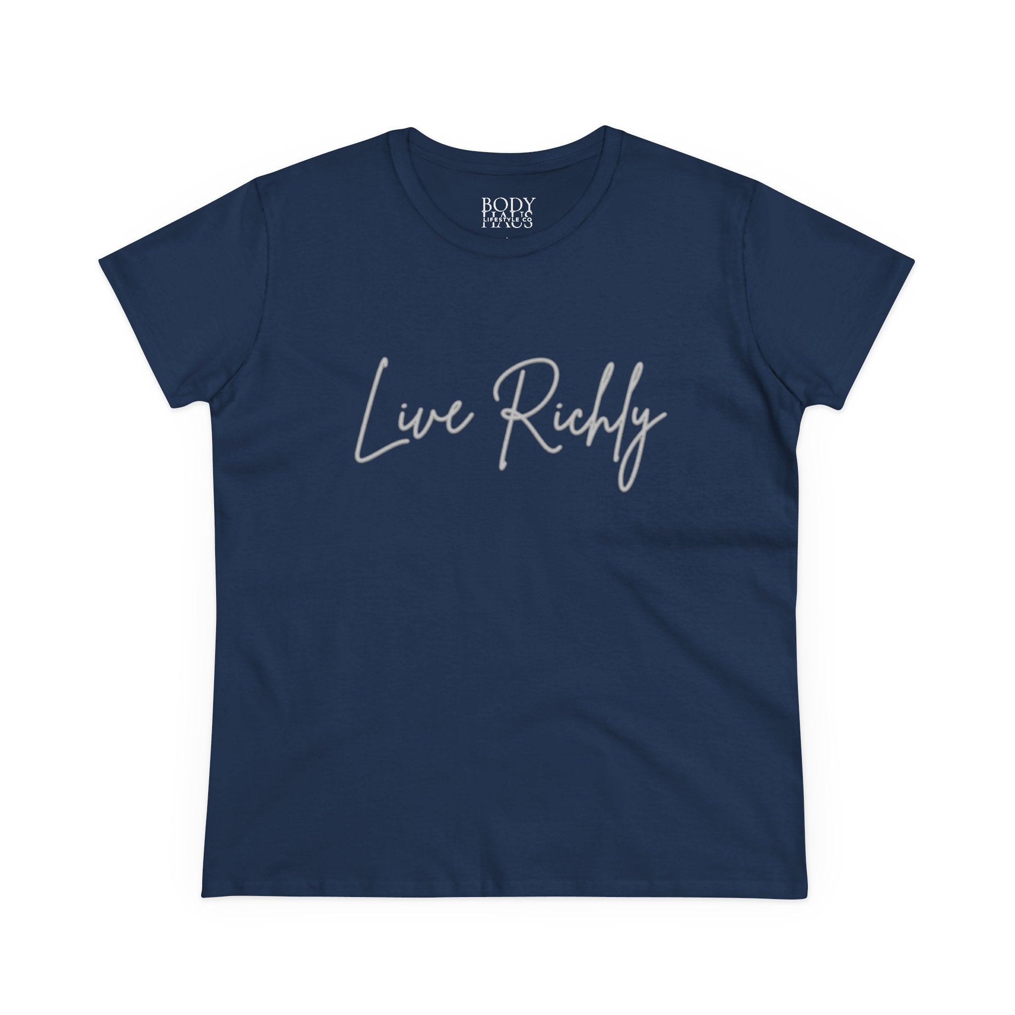 BHLC Women’s Organic Rib Crop Tee – Slim Fit “Live Richly” Short Sleeve Top